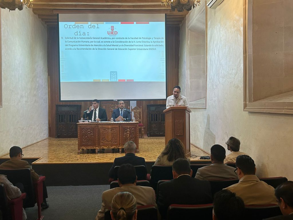 Durango, Dgo., noviembre 2025 — El buen trabajo constante da frutos: bajo la gestión comprometida de la Subsecretaría General Académica, encabezada por el COMF Gamaliel Ortiz Sarabia, el Programa Institucional de Cultura de la Paz fue oficialmente ratificado por la Junta Directiva de la Universidad Juárez del Estado de Durango (UJED). Durante la sesión, también se presentó el Cronograma Anual 2025, que articulará de manera estratégica las acciones del programa en todas las unidades académicas y administrativas de la institución durante el próximo año.